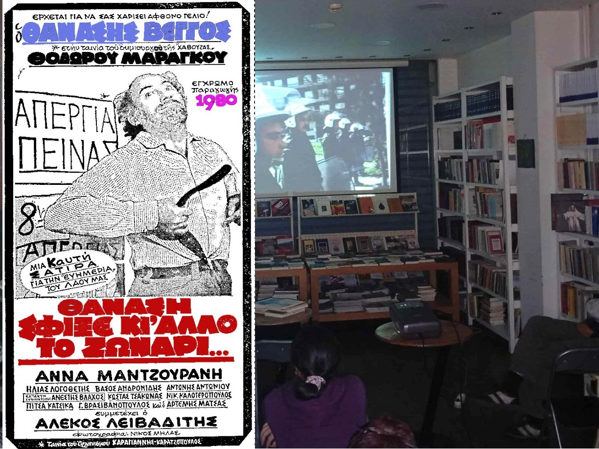 Με μια σχετική καθυστέρηση, λόγω των συγκεντρώσεων για Παλαιστίνη και Τέμπη-Ρούτσι, πραγματοποιήθηκε στο ΕτΤ η προγραμματισμένη προβολή της ταινίας "Θανάση σφίξε κι άλλο το ζωνάρι" σε σενάριο και σκηνοθεσία του Θόδωρου Μαραγκού, την Κυριακή, 5/10, που μας πέρασε. Πριν την προβολή,
